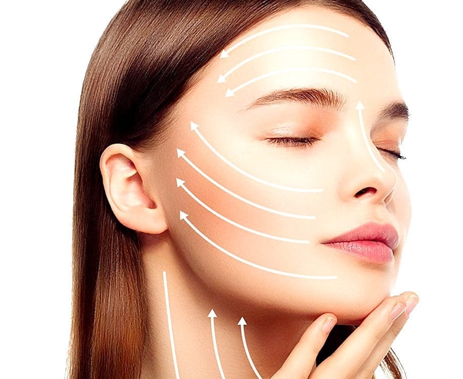 • zatezanje kože lica (efekat kompletnog liftinga lica ili parcijalnog liftinga lica, zavisno od tretirane regije),